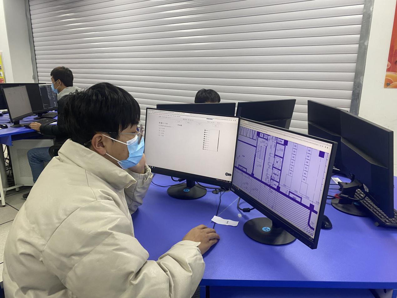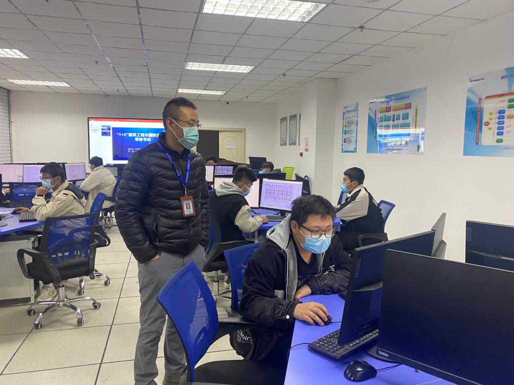 11月19日下午,公司在BIM技术中心组织开展了“1+X”建筑工程识图(建筑设计类中级)职业技能等级证书考核。经前期遴选、线上线下培训,最终11名员工参加此次考核。教务处负责人薛亚宏、科长刘青青、太阳成集团tyc151cc党支部书记、经理谢延友巡查考核现场。