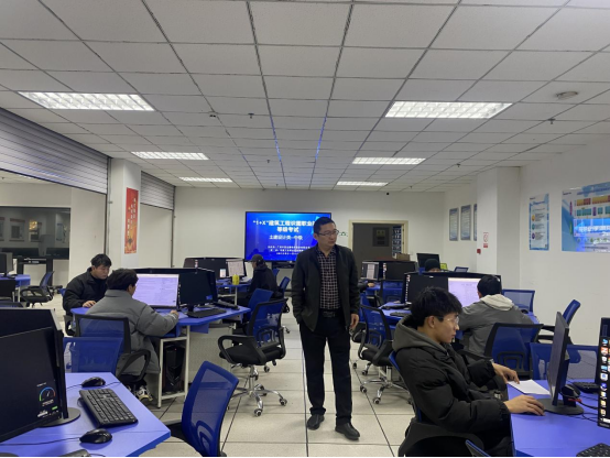 2023年11月18日上午,公司在BIM技术中心组织开展了“1+X”建筑工程识图(建筑设计类中级)职业技能等级证书考核。此次有10名员工参加考核。太阳成集团tyc151cc党总支书记、经理谢延友巡查考核现场。