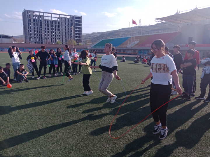 比赛共分为五个项目:袋鼠跳、五人绑腿跑、跳绳比赛、女生踩气球、拔河。总裁判员宣布比赛正式开始。赛场上选手们轻捷如燕,齐心协力,为挑战自我而奋斗,为集体荣誉而拼搏。赛场下观众们阵阵有力的助威,声声有劲的呐喊,欢呼声、加油声,每一次呐喊都诠释了团结和所有班级齐心协力的情怀。