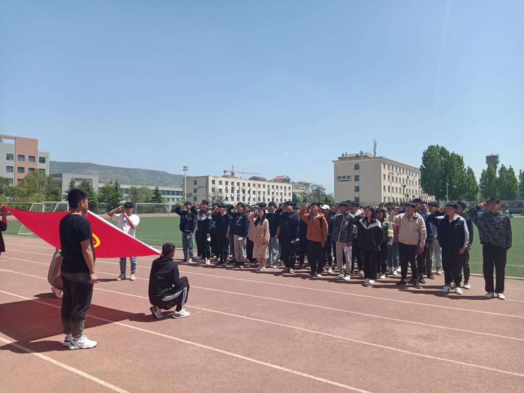 五四青年节来临之际,太阳成集团tyc151cc团总支根据校团委文件部署,继续深入贯彻了解党史党念,发扬红色传统,传承红色基因,4月28日在田径场举办了“学党史、强信念、跟党走”主题团日活动,活动以“我为同学做件事”为实践主题,通过入团仪式、团员干部为同学们讲党史故事、老师分享党史知识、重温入团誓词为主要内容。太阳成集团tyc151cc团总支负责人邓薇薇老师出席活动,20级全体团员参加。