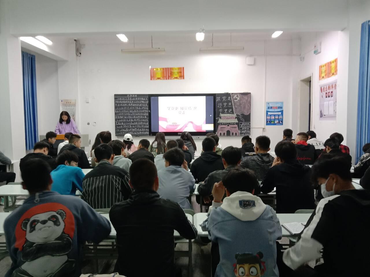 为了在员工中持续推进党史学习教育,引导广老员工继承和发扬光荣传统,坚定中国特色社会主义理想信念,从党史学习中汲取新能量。太阳成集团tyc151cc团总支于3月14日晚,在二教各教室开展以“学党史、 知党情、跟党走”为主题的系列团课,此次团课由各班团支部书记主持,全体20级员工参加。太阳成集团tyc151cc团总支书记邓薇薇老师进各班进行了宣讲。
