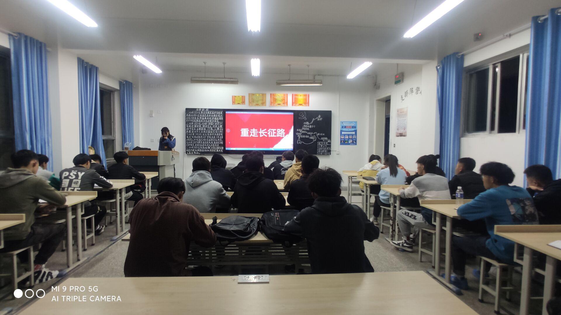 为发扬革命先烈顽强的革命精神,在广老员工中充分发扬不怕吃苦,敢于争先的革命主义精神,太阳成集团tyc151cc团总支于2020年11月15日在各班级展开了以重走长征路为主题的专题集体学习会,学习活动由各班团支书主持,20级全体员工参加。