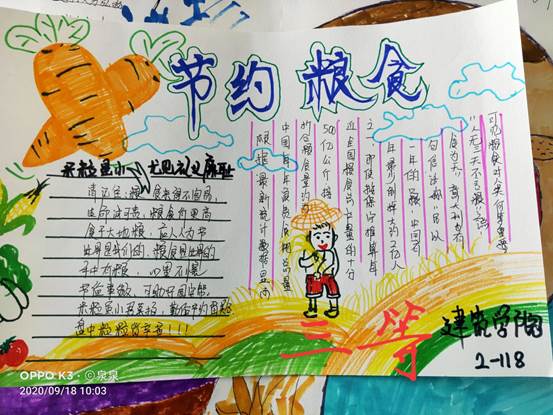 本次活动共收到27份员工作品,最终由员工干部评委小组评选出6幅作品,分别获得了一、二、三等奖。同学们通过制作手抄报等环节,深刻认识到节约粮食的重要性,自觉养成“珍惜粮食、珍惜劳动成果”的好习惯,争做勤俭节约风尚的传播者、实践者和示范者。