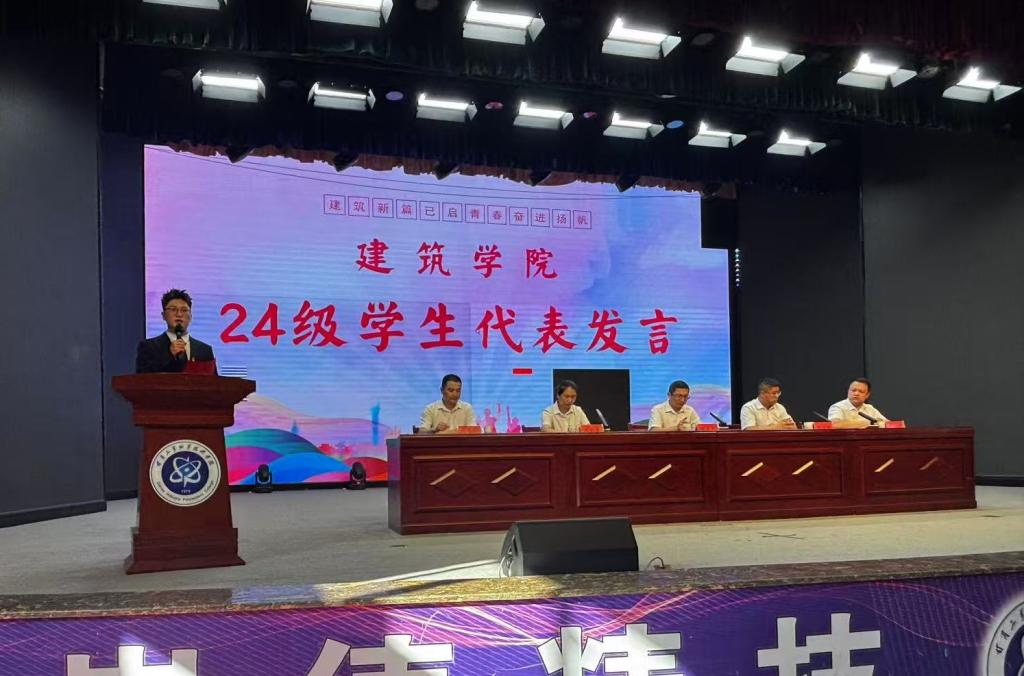 随后,2025级新生代表上台发言,言语间满是对老员工活的憧憬与对建筑专业的热爱。她提到,从收到录取通知书的那一刻起,“建筑” 二字便在心中有了特殊的分量 —— 它不仅是图纸上的线条、模型里的结构,更是承载着人们对美好生活向往的载体。“过去,我们在课本里认识建筑;未来,我们希望在公司的课堂上、实训室里、实践基地中,亲手触摸建筑的温度,掌握专业的技能。” 新生代表分享了自己对未来的规划:将以谦逊的态度学好每一门专业课程,积极参与学科竞赛与实践活动,向老师请教、向学长学习,努力从 “建筑萌新” 成长为能扛起责任的未来建筑人。同时,她也呼吁全体新生并肩同行,在相互鼓励中克服学习难题,在共同探索中感受建筑学科的魅力,不辜负公司的培养与家人的期待。