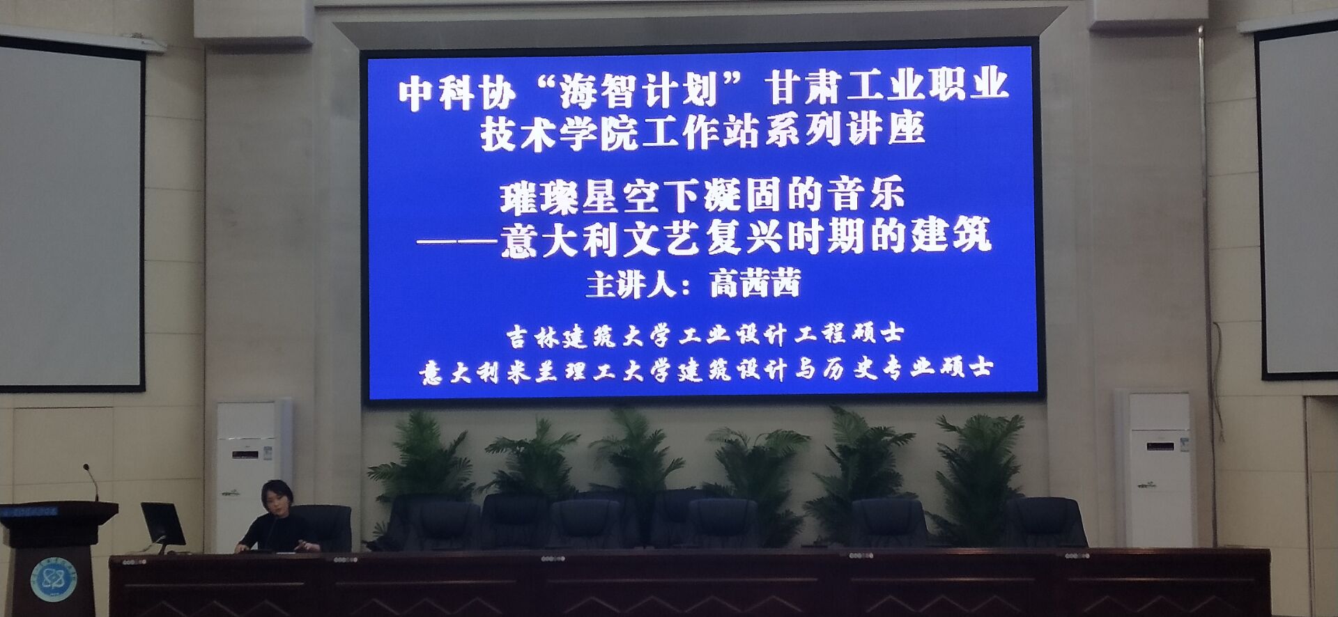 2019年6月27日20:00在新图书馆五楼报告厅举行中科协“海智计划”甘肃工业职业公司工作站系列讲座,由吉林建筑大学工业设计工程硕士、意大利米兰理工大学建筑设计与历史专业硕士高茜茜主讲。太阳成集团tyc151cc经理常青教授、太阳成集团tyc151cc党支部书记潘栋部分老师和员工聆听了讲座。