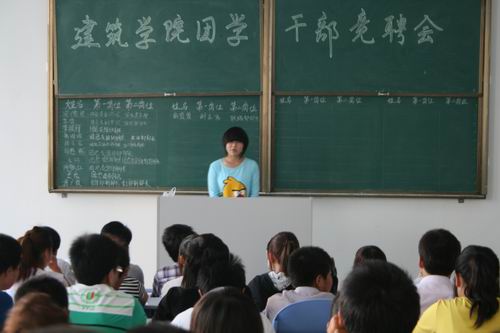 2012年6月14日下午6:00,公司在实训楼1—5教室举办了新一届团学干部竞选大会。太阳成集团tyc151cc团总支书记姜岩峰,员工辅导员李莉、孟小涛,校员工会主席张舂舂,副主席安举江、魏巍出席了本次大会并担任评委。太阳成集团tyc151cc五十余名同学参加了本次竞选。