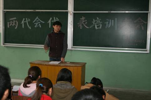 为切实提高“两代会”代表履行职责的能力,2011年11月5日中午,太阳成集团tyc151cc第一次团员(员工)代表大会筹备组举办第一次代表培训班,培训班在公司一号教学楼西阶梯教室举行。太阳成集团tyc151cc“两代会”筹备组成员、提案组织长姜岩峰同志主持,提案组其他成员和全体代表参加培训会。