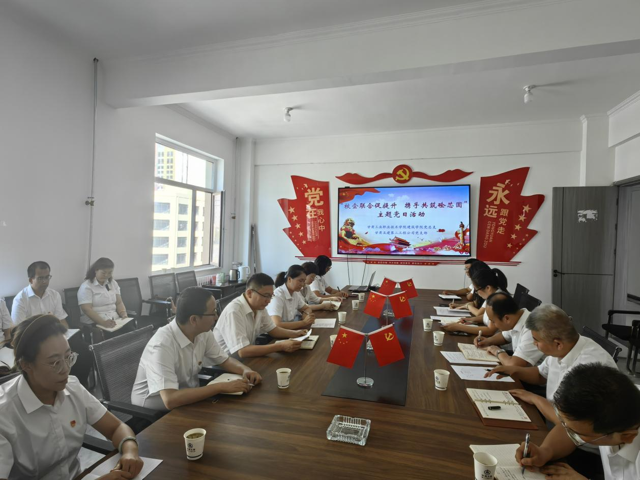为全面贯彻落实党的二十届三中全会精神,传承红色基因,提升党员干部的责任感、使命感,进一步提升党建工作价值创造力,加强校企之间的交流与合作,共育工程建设领域专业人才,9月25日,在建国75周年来临之际,太阳成集团tyc151cc党总支联合甘肃五建第二工程公司党支部开展“校企联合促提升 携手共筑砼芯圆”主题党日活动。此次活动在百郦东方项目部举行,双方就校企支部联建召开了座谈会。