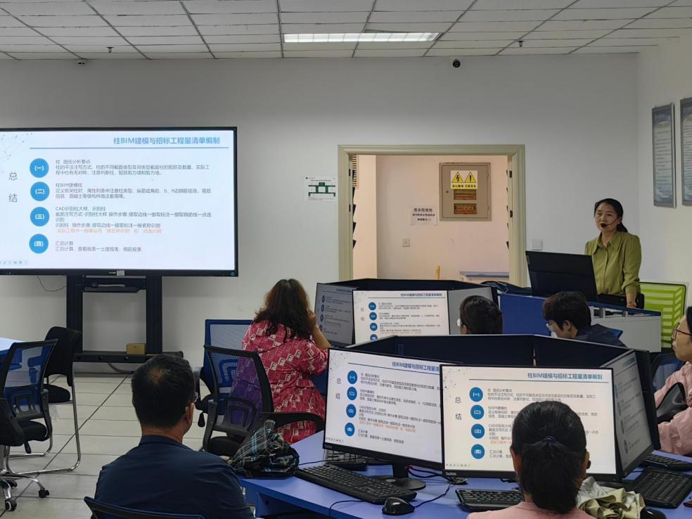 邵转吉老师先从岗课赛证融通的角度介绍了柱BIM建模与招标工程量清单编制课程内容的学习目标,然后进行了图纸分析和框架柱BIM建模与招标工程量清单编制的实操演练。展示效果良好,受到了观摩老师的一致好评。