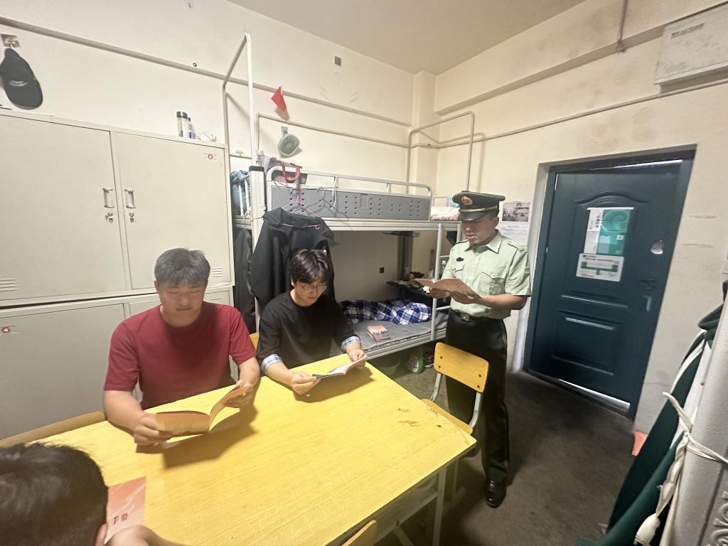 消防2431班退伍军人靳钰博,在教学楼晚自习教室,宿舍等区域发放征兵宣传手册,里面展示了征兵的基本条件、报名流程、优惠政策、军人风采等内容,图文并茂。