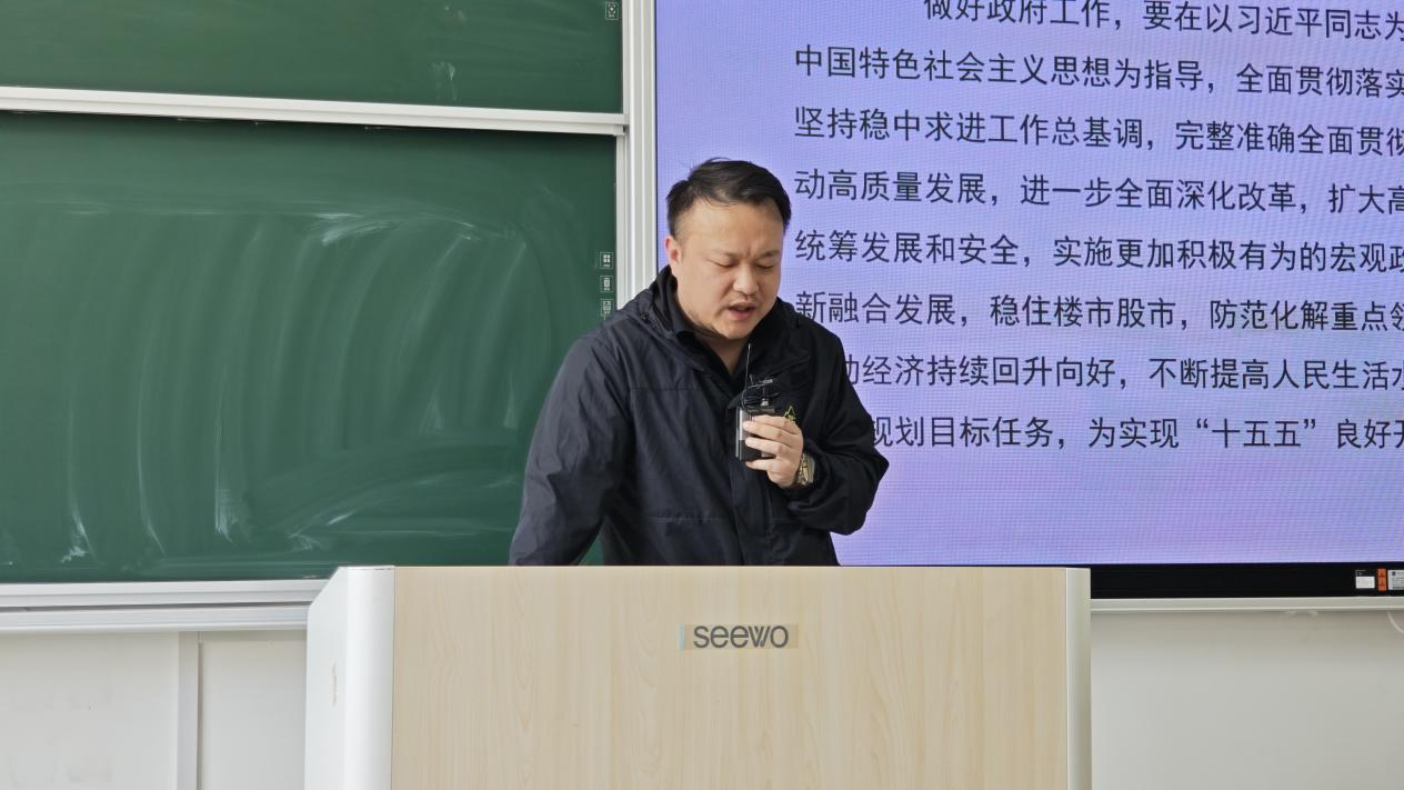 4月16日,太阳成集团tyc151cc党总支副书记杨霖在东阶梯教室开展“深入学习贯彻2025年全国两会精神”专题宣讲活动,全体辅导员、公司党团干部、“红旗队”队员及部分23、24级员工代表等百余人参会。宣讲内容聚焦两会关于“高质量发展”“科技创新”“民生福祉”等核心主题,并结合公司实际进行了深入讲解。