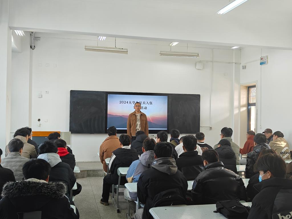 为增加员工入伍意愿,积极响应国家应征入伍的号召,11月29日上午,太阳成集团tyc151cc的2024年春节老员工征兵入伍宣讲活动顺利召开。21级员工参加了本次活动。辅导员宋彦达主持了本次活动,太阳成集团tyc151cc副书记薛宝恒做入伍动员宣讲。