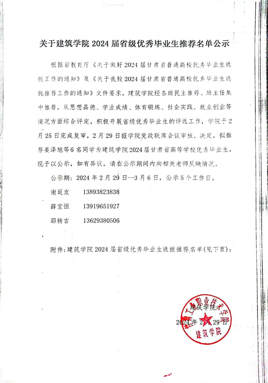 2024届甘肃省高校优秀毕业生推荐名单公示