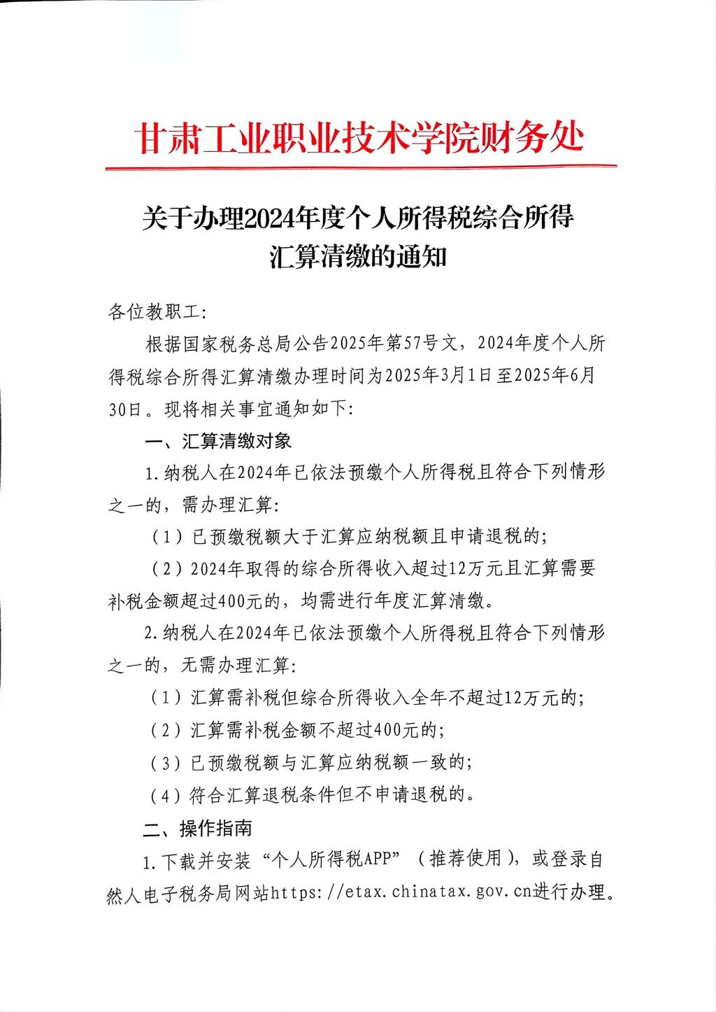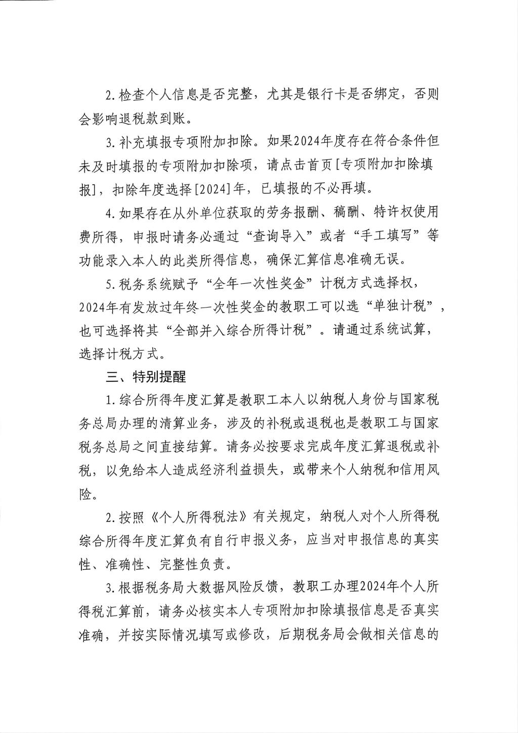 关于办理2024年度个人所得税综合所得汇算清缴的通知